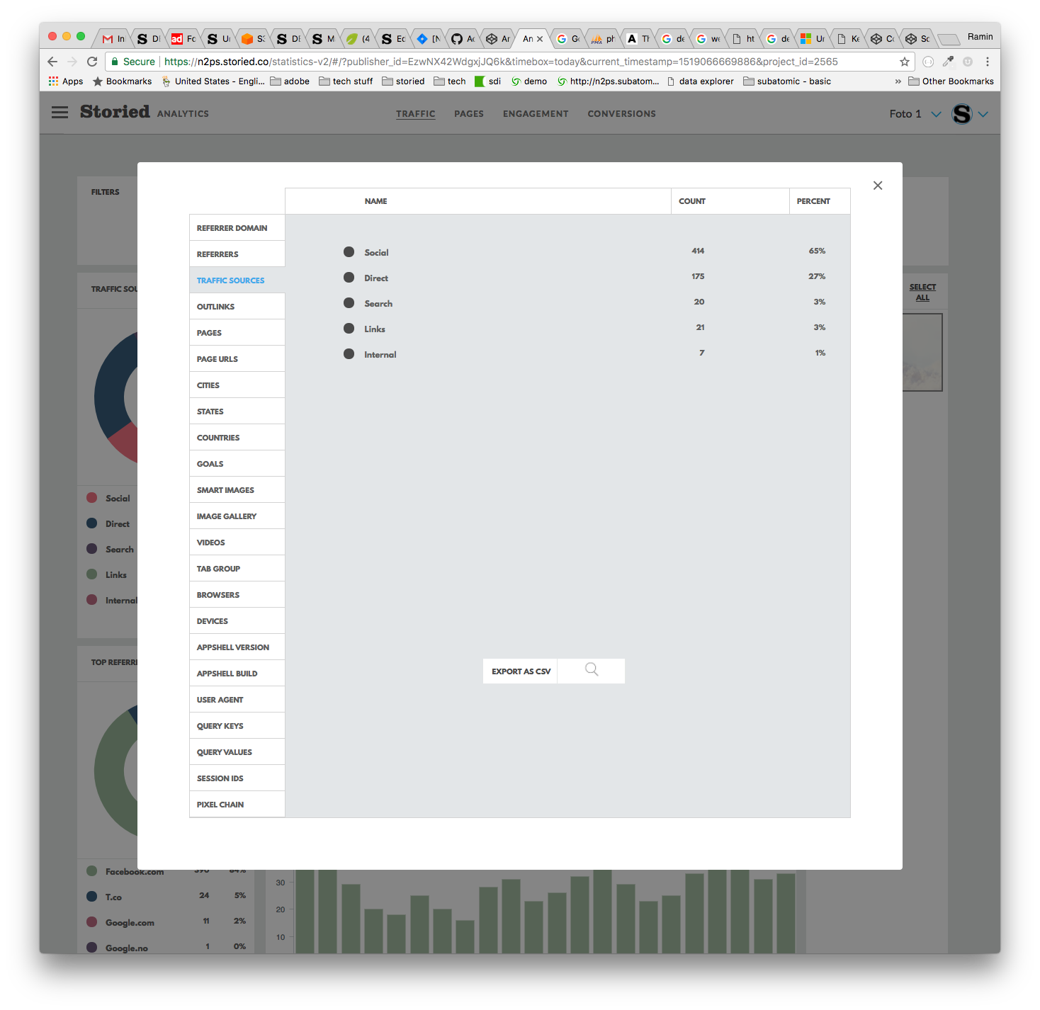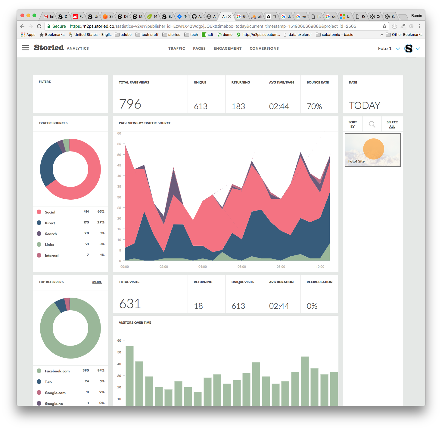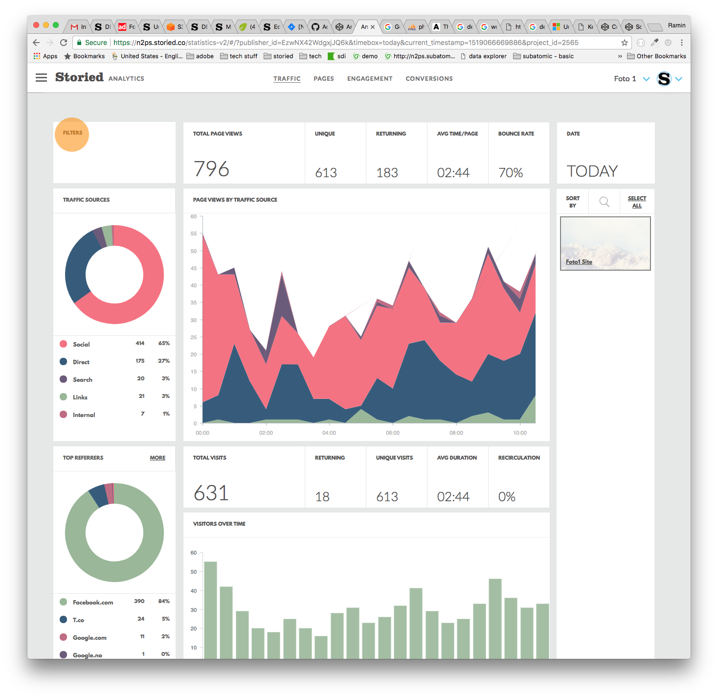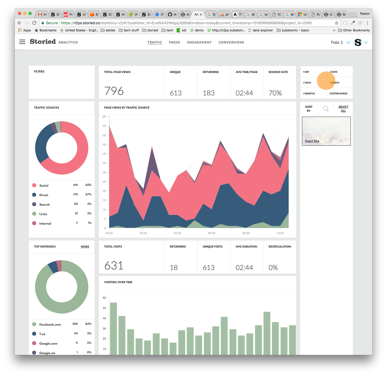 The Storied Analytics Dashboard provides a comprehensive view of event data for published projects. The simple three step process below is used for filtering through the data to examine the desired metrics.