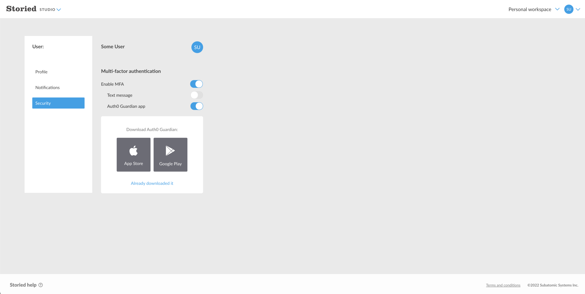 Multi-factor authentication (MFA) is an IT authentication technique that requires a user to present at least two factors that prove their identity. Storied leverages MFA to ensure that your content and data remain safe and user access adheres to your corporate security guidelines.