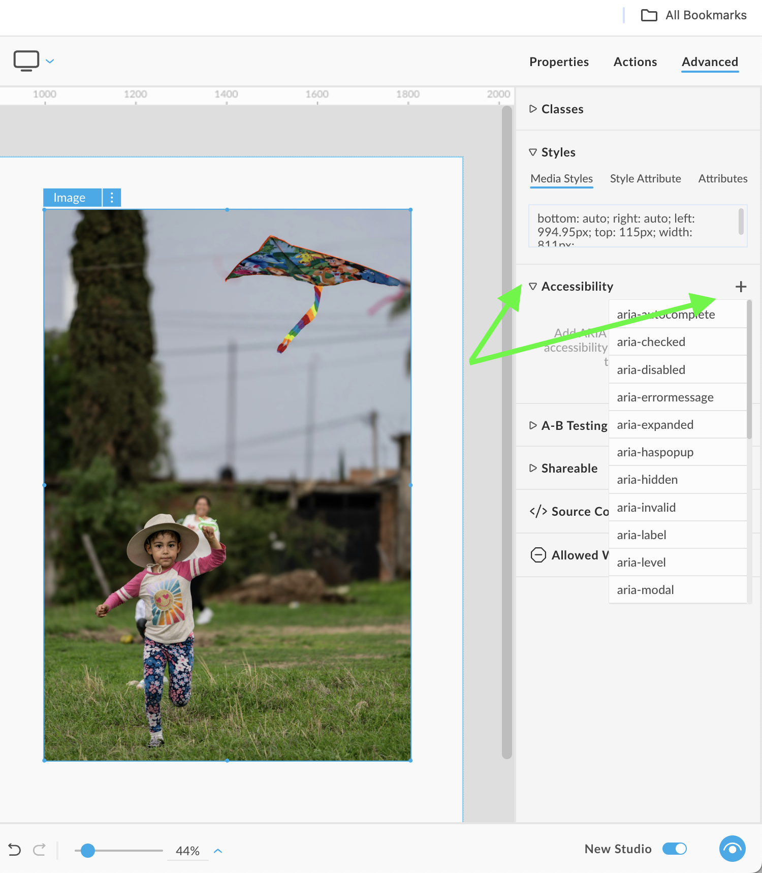 For advanced use cases—such as custom controls or nonstandard widgets—you can add or override ARIA attributes manually: